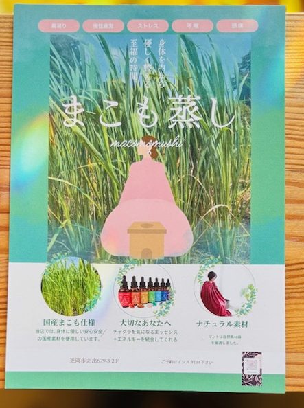 まこも蒸しは、日本古来から伝わるまこもの蒸気を浴びることで、体の芯から温まり、蓄積された疲れを癒します。
